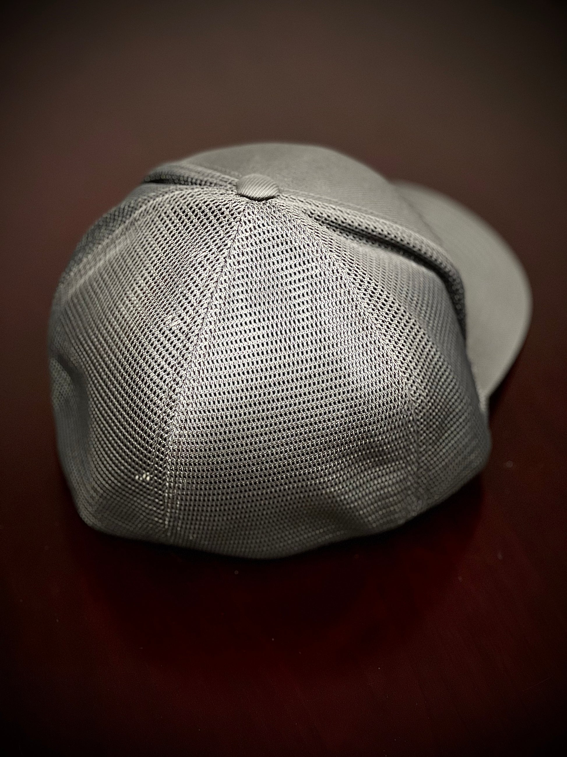 The original flex fit unipanel mesh hat, size L/XL, charcoal color with LG Logo black patch.